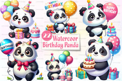 Celebrate with this Panda Birthday Clipart Bundle, featuring party panda designs, ideal for birthday animal crafts.