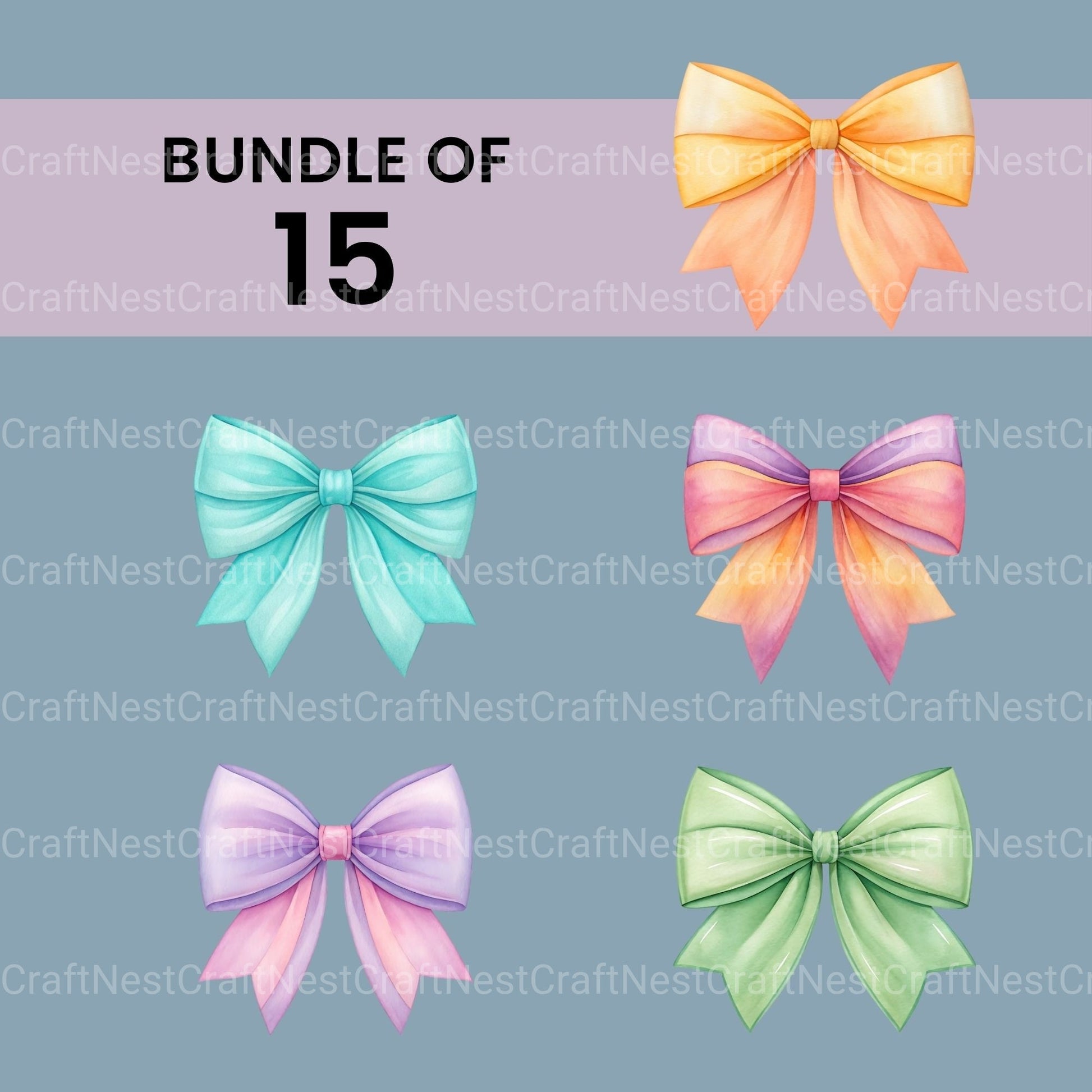 Bow with this Pastel Bows 15 Clipart Bundle, featuring pastel bow designs, ideal for fashion color crafts.