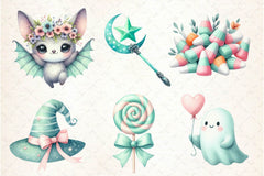 Refresh with this Pastel Mint Halloween Clipart Bundle, featuring soft spooky designs, perfect for gentle Halloween crafts.