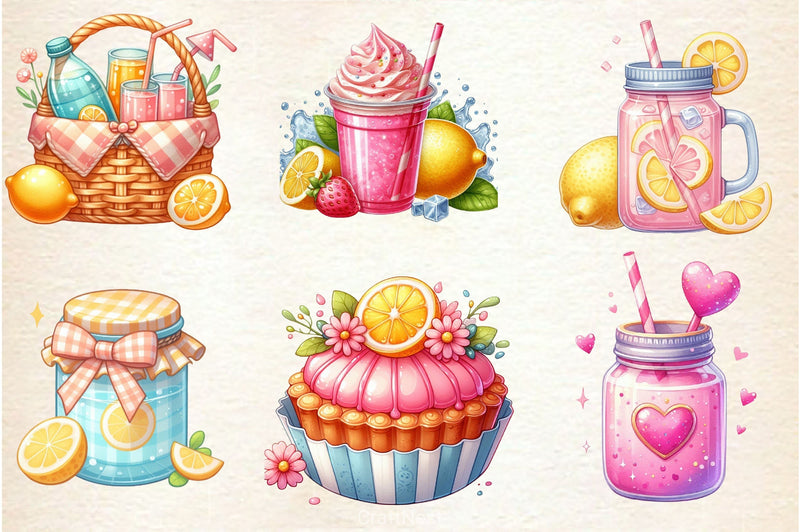 Sip with this Pastel Pink Lemonade Summer Clipart Bundle, featuring soft lemonade designs, perfect for sweet summer crafts.