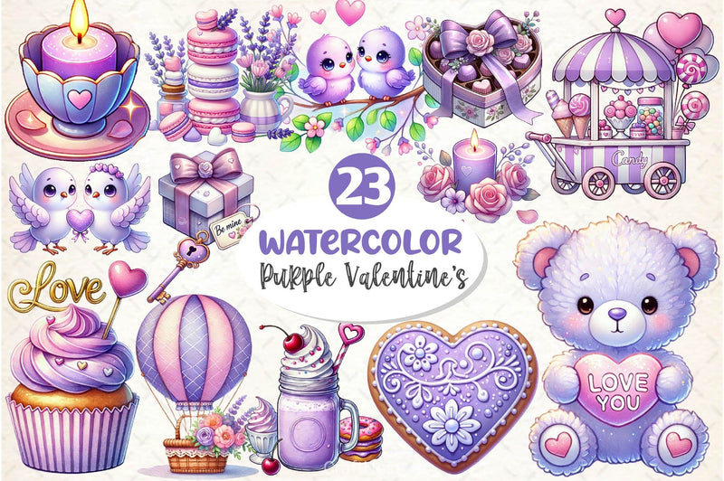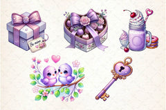 Pastel Purple Valentine's Clipart Bundle 2