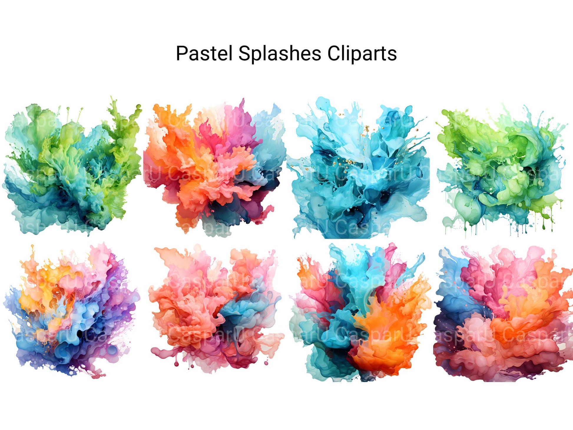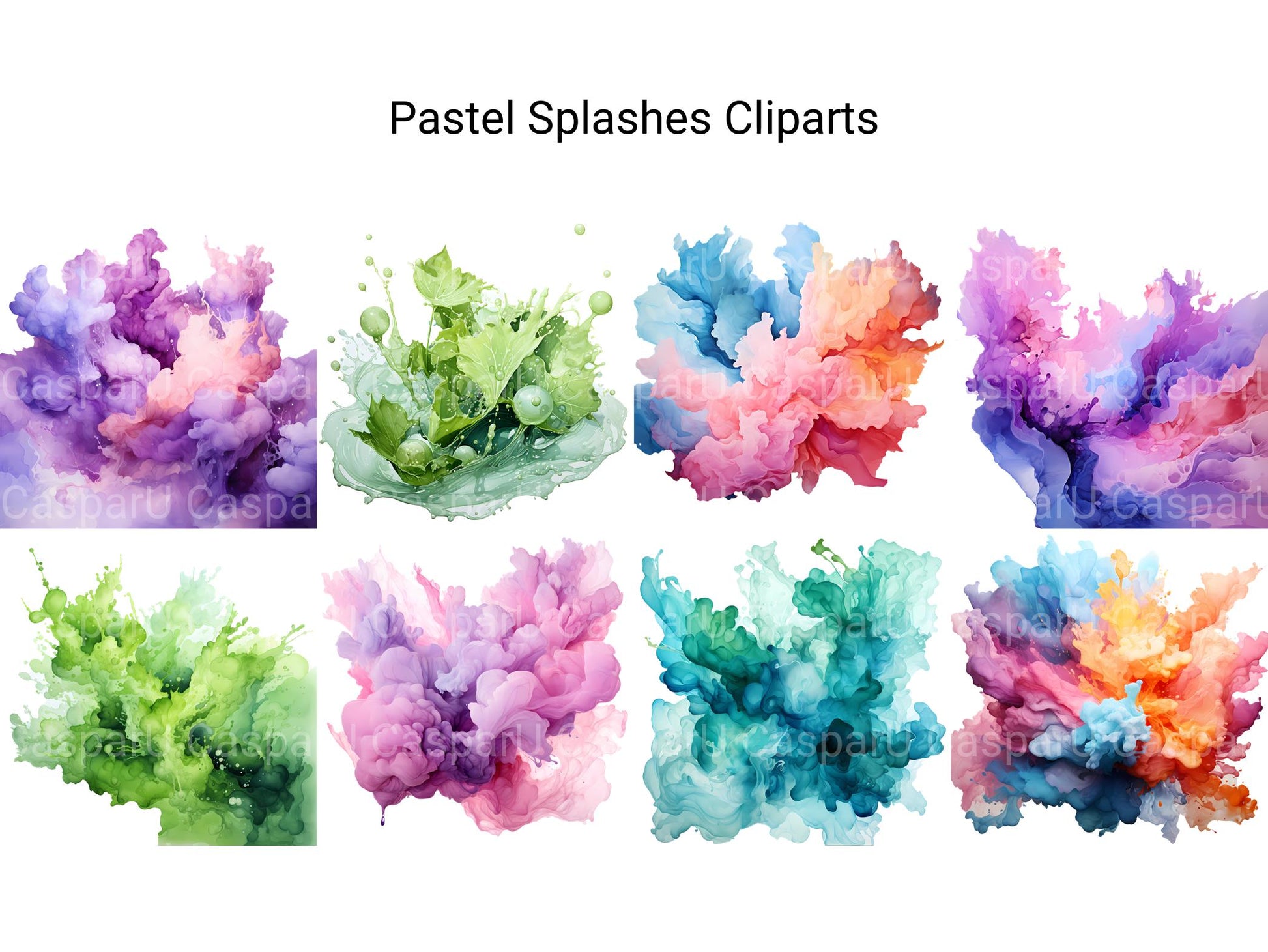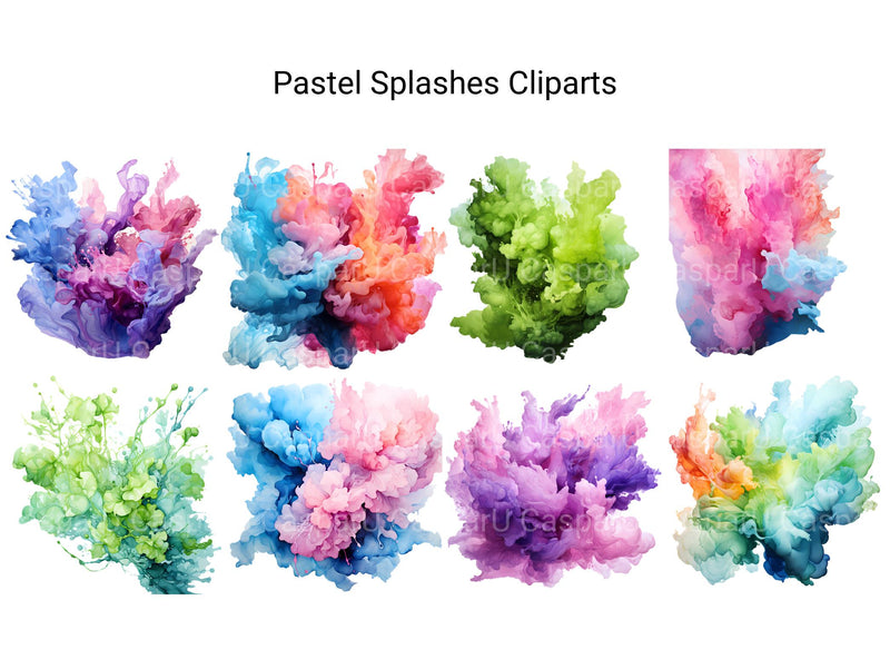 Embrace the soft and dreamy palette of pastel hues with our Pastel Splashes clip art. These digital illustrations feature gentle pastel colors and whimsical splashes, perfect for adding a touch of delicate beauty and playful charm to your projects, whether for invitations, nursery decor, or feminine branding, enveloping viewers in a soft, ethereal world of pastel perfection and sweet serenity.