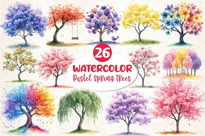 Pastel Spring Trees Clipart Bundle 4