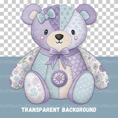 Cuddle with this Patchwork Bears 15 Clipart Bundle, featuring quilted bear designs, ideal for baby crafting crafts.