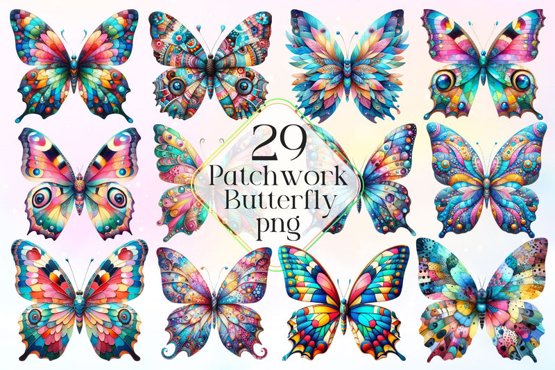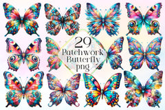 Quilt with this Patchwork Butterfly Clipart Bundle, featuring sewn insect designs, perfect for craft nature projects.