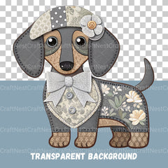 Quilt with this Patchwork Dachshunds 15 Clipart Bundle, featuring quilted dachshund designs, ideal for dog crafting crafts.