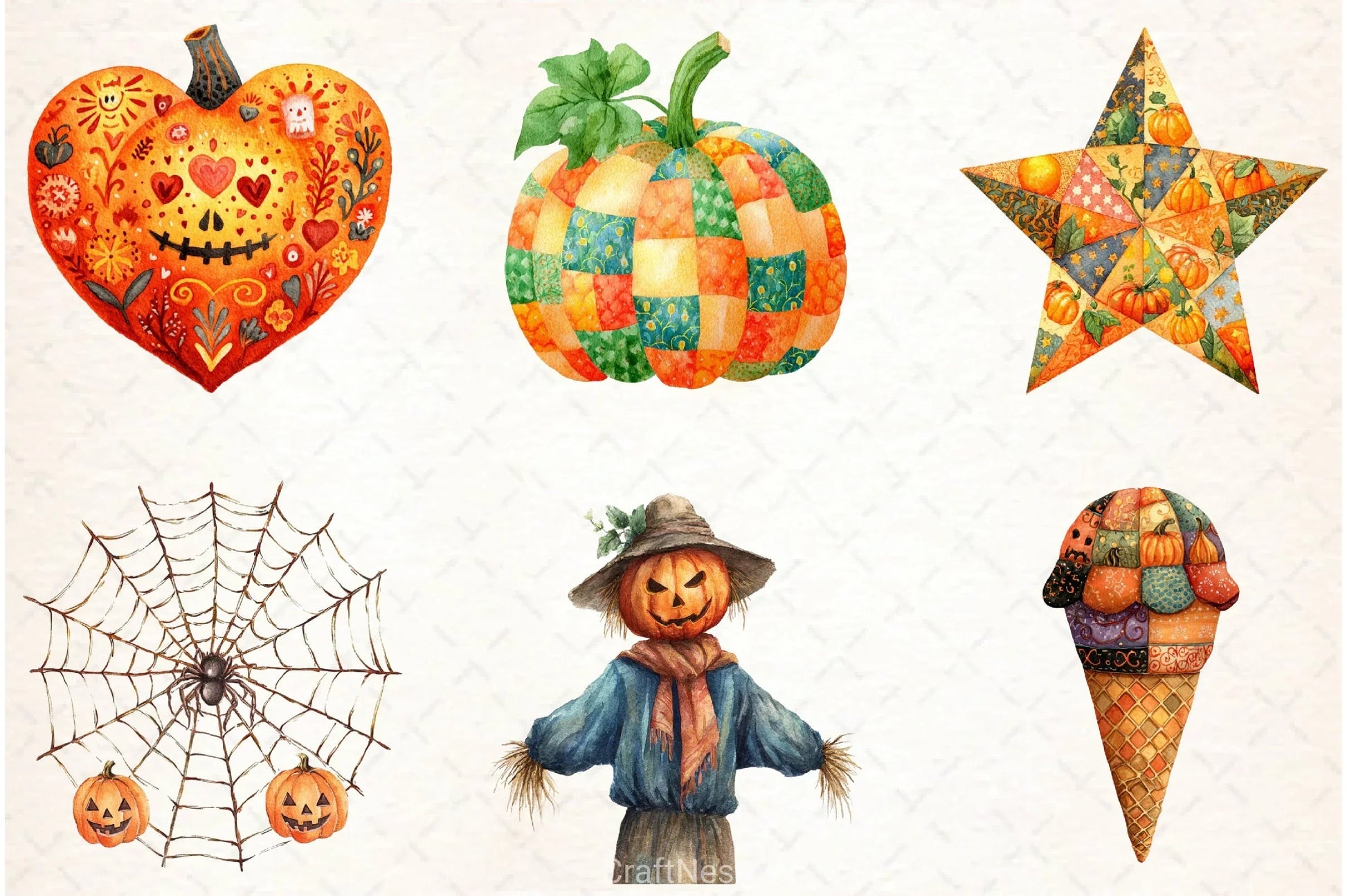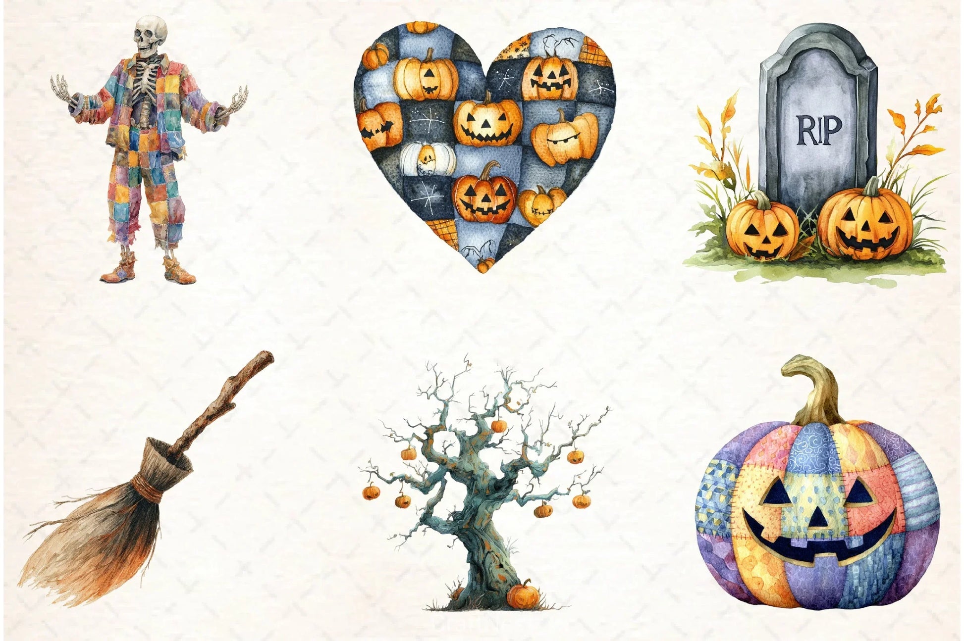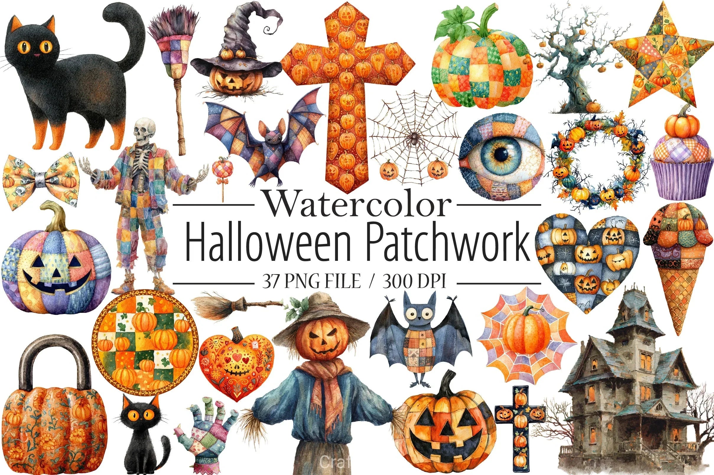 Spookify your projects with the Patchwork Halloween Clipart Bundle, featuring unique and whimsical designs perfect for festive crafts, party invitations, and seasonal decorations.