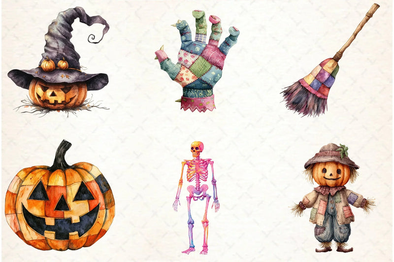Patchwork Halloween Clipart Bundle
