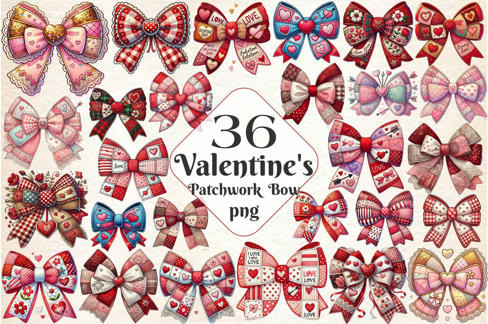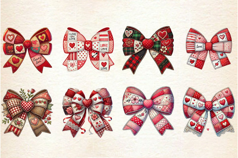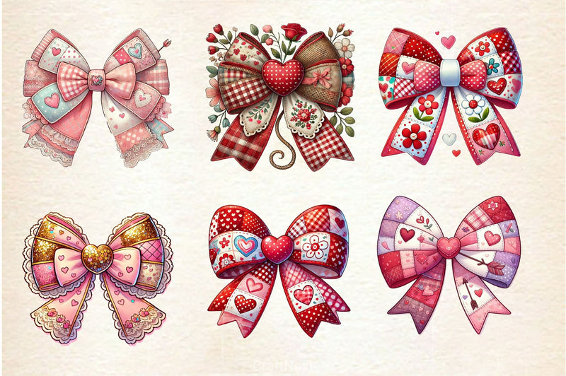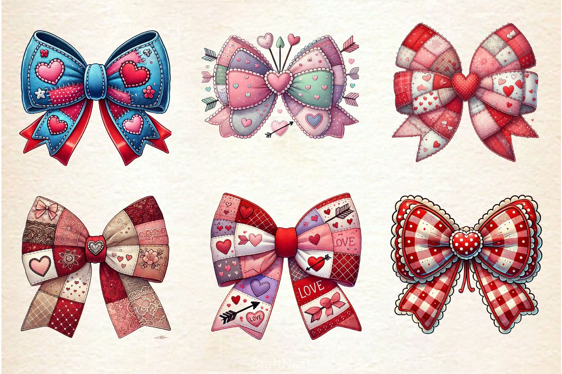 Patchwork Valentine's Day Bow Clipart Bundle 2