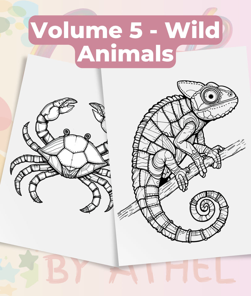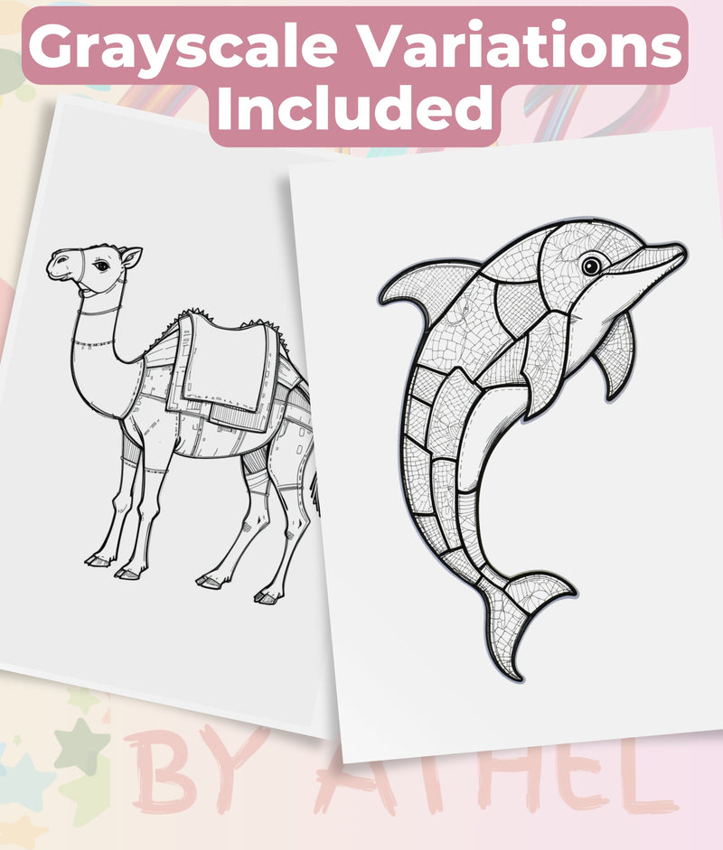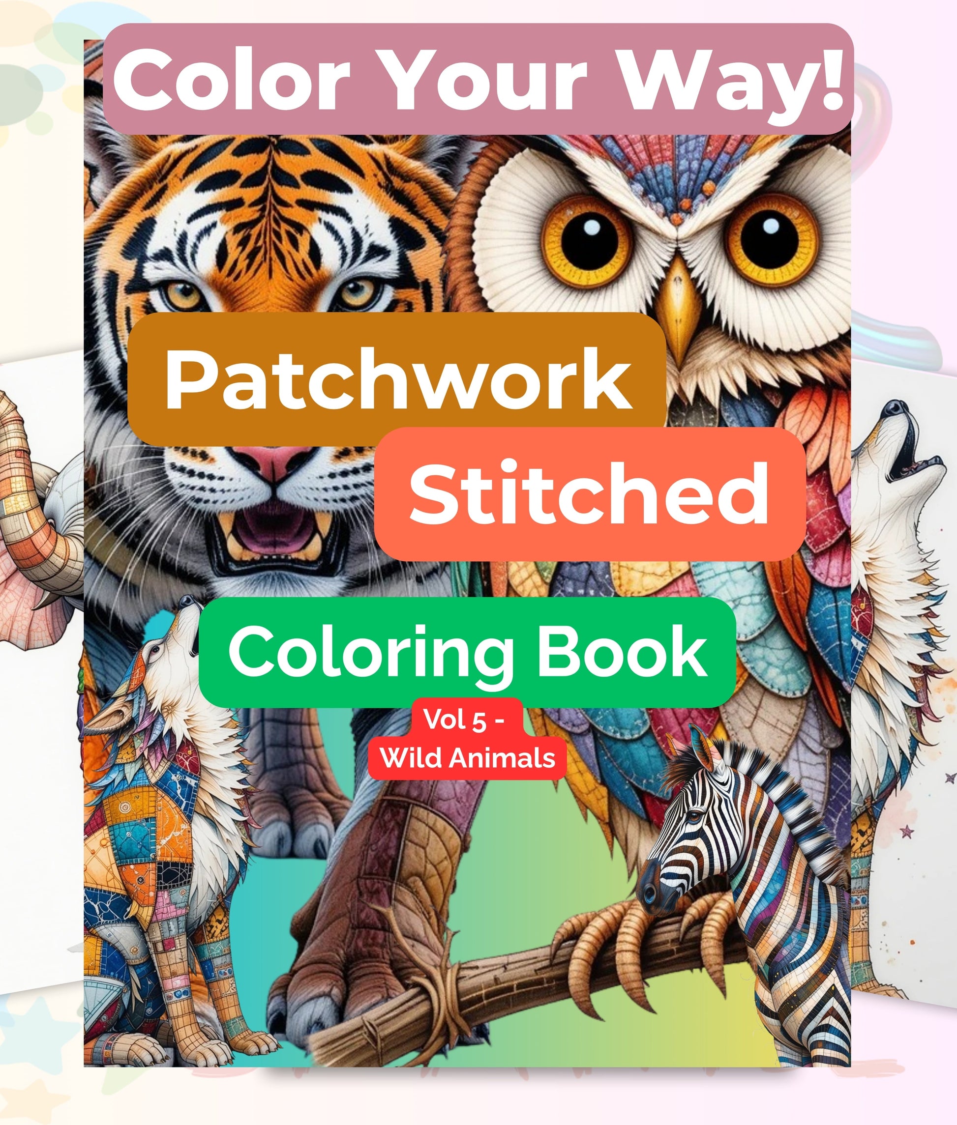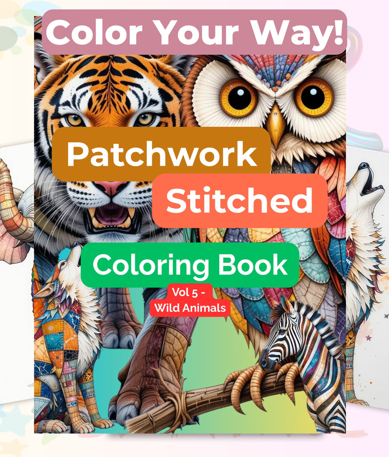 Unleash creativity with the Patchwork Wild Animals Coloring Book Bundle, featuring a captivating collection of exotic animal designs perfect for nature-inspired art projects.