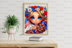 Patriotic with this Patriot Girl Face Clipart Bundle, featuring patriotic girl designs, perfect for Independence Day people crafts.