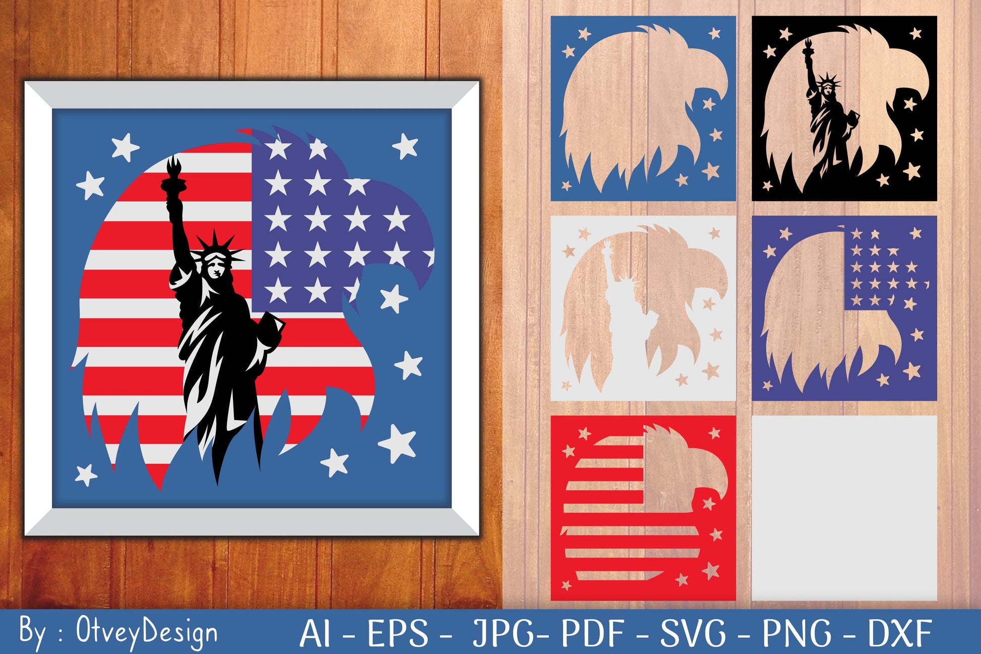 Patriotic Statue of Liberty Shadow Box SVG Bundle USA