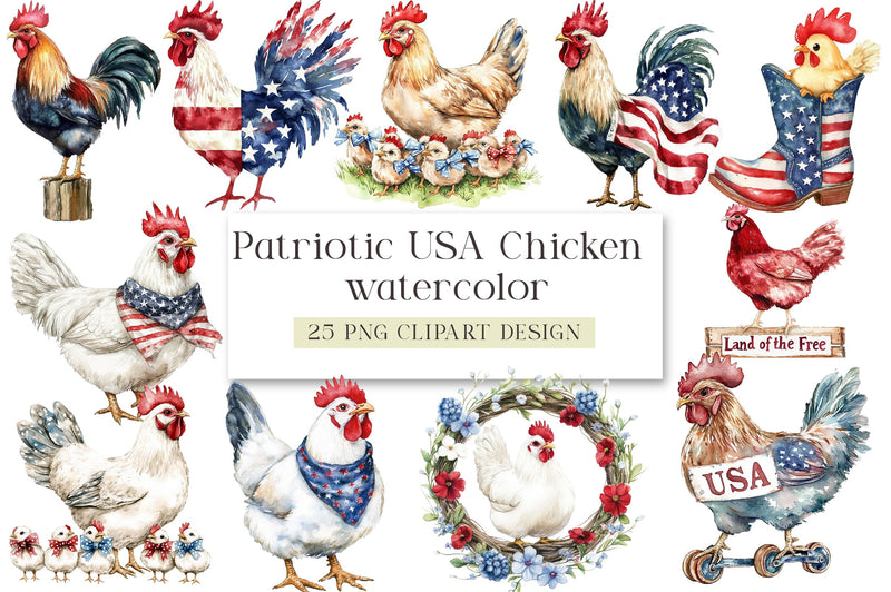 Celebrate American pride with our Patriotic USA Chicken Retro America Clipart Bundle. Perfect for crafting, this collection features vintage-inspired designs that capture the spirit of the USA. Ideal for DIY projects, t-shirt designs, and more, these high-quality cliparts are a must-have for any creative enthusiast. Unleash your creativity and showcase your love for America with these unique and charming illustrations. Perfect for Independence Day, Memorial Day, or any patriotic celebration, this bundle is your go-to resource for all things Americana.