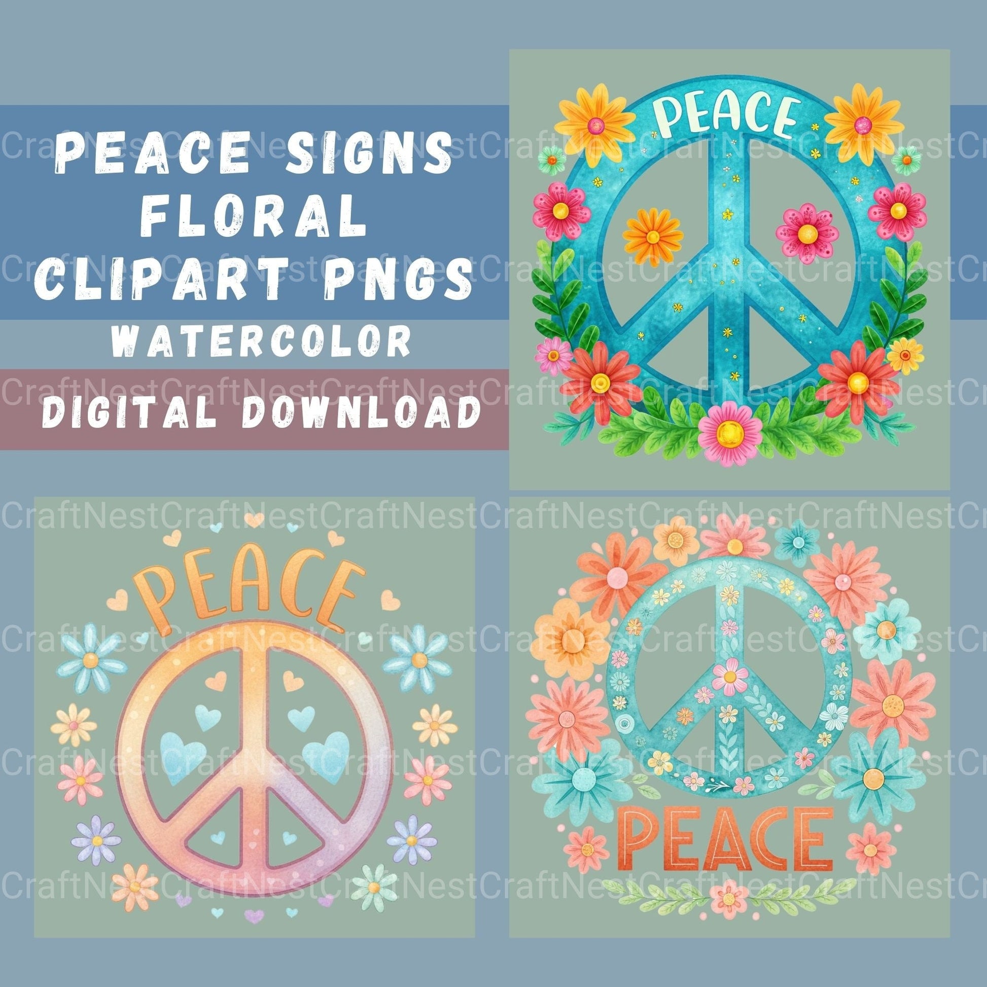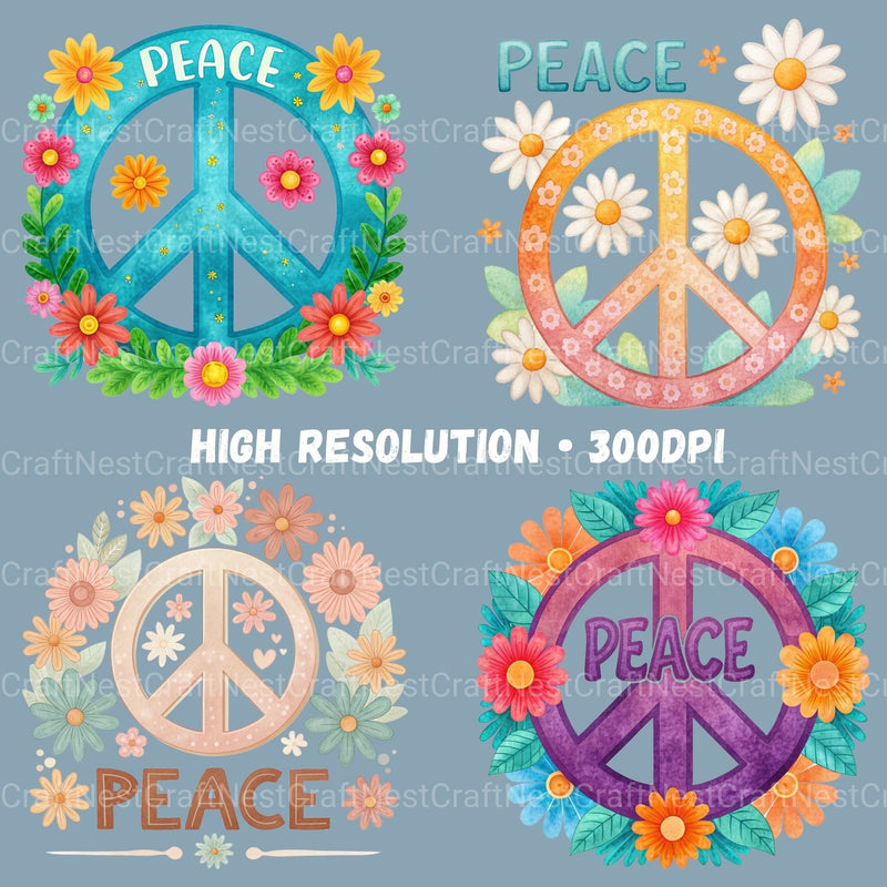 Peace with this Peace Signs 15 Clipart Bundle, featuring hippie peace sign designs, perfect for boho vintage crafts.