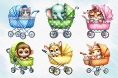Peeking Baby Animals In Stroller Clipart Bundle