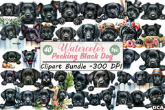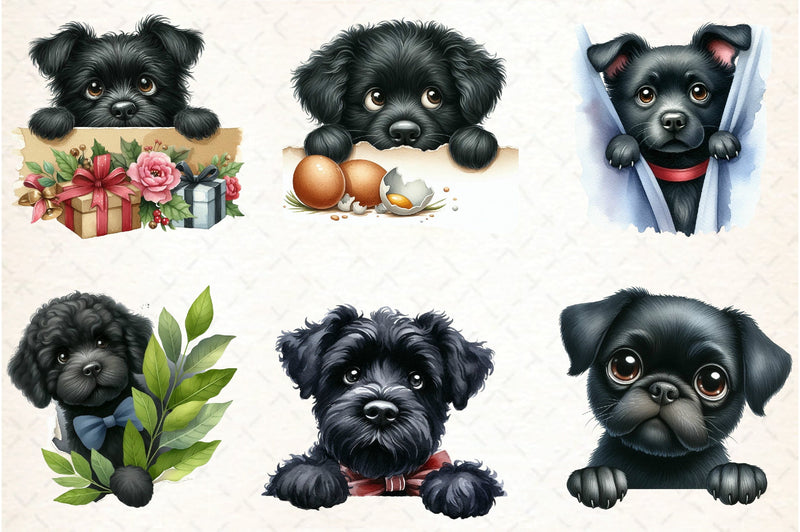 Peeking Black Dog Clipart Bundle