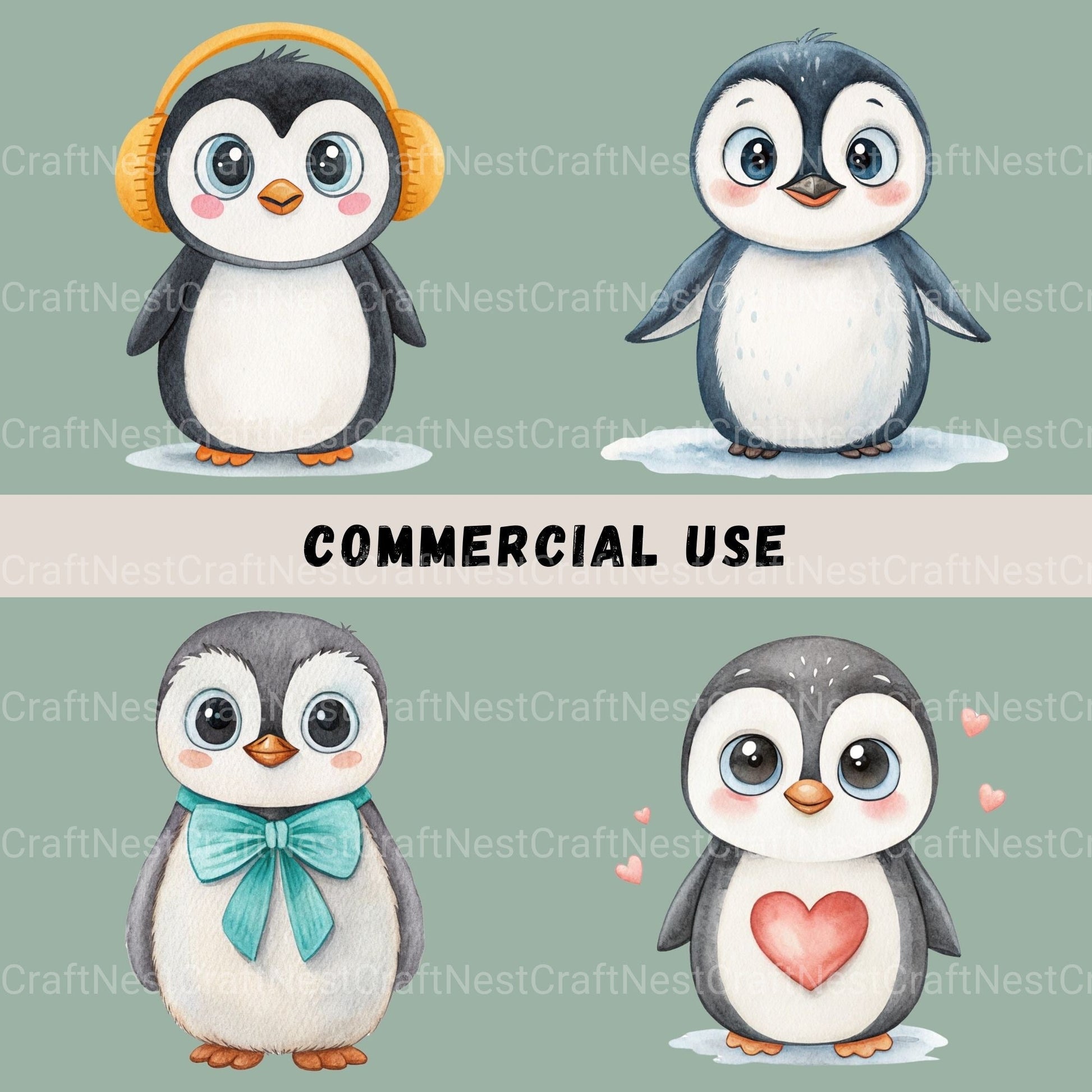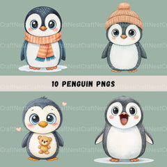 Waddle with this Penguins 10 Clipart Bundle, featuring adorable penguin designs, perfect for winter animal crafts.