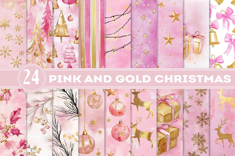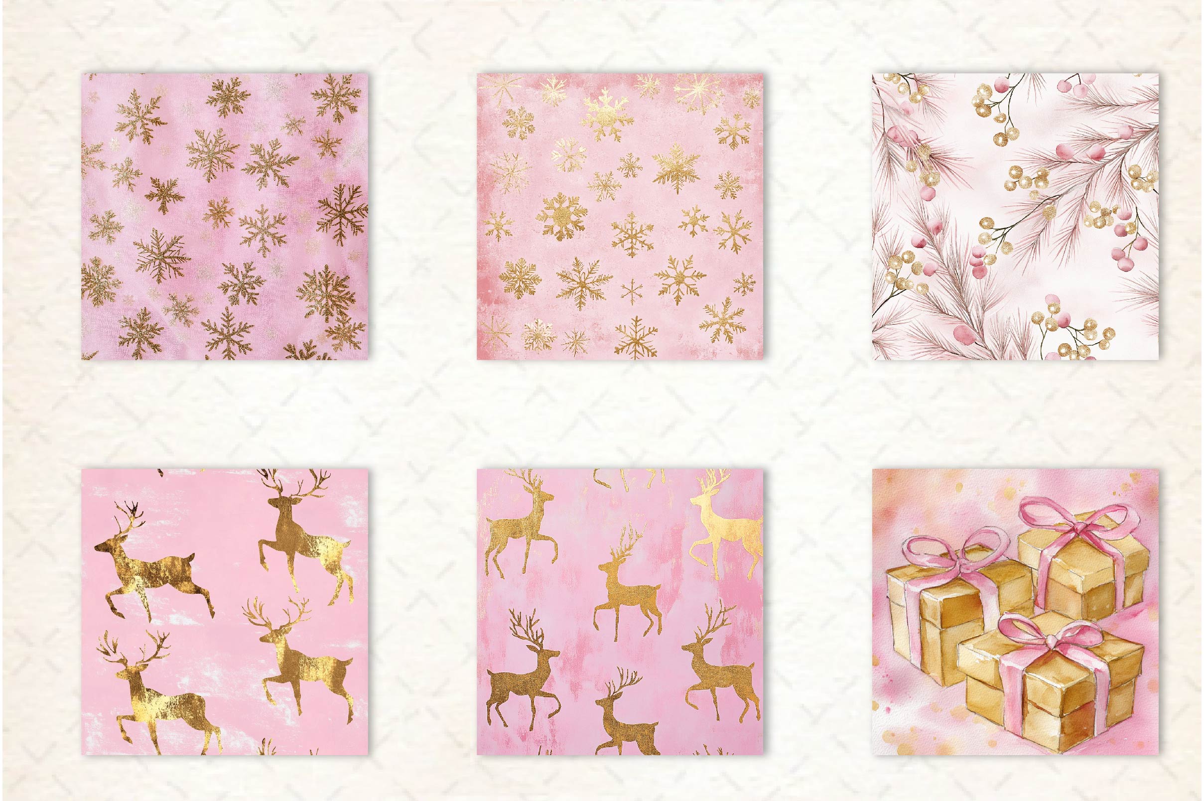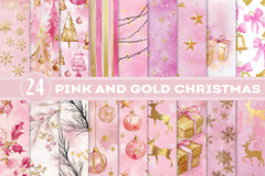 Glamour with this Pink And Gold Christmas Clipart Bundle, featuring elegant holiday designs, ideal for luxurious Christmas crafts.