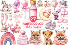 Baby with this Pink Baby Girl Nursery Clipart Bundle, featuring pink baby designs, ideal for nursery decoration crafts.