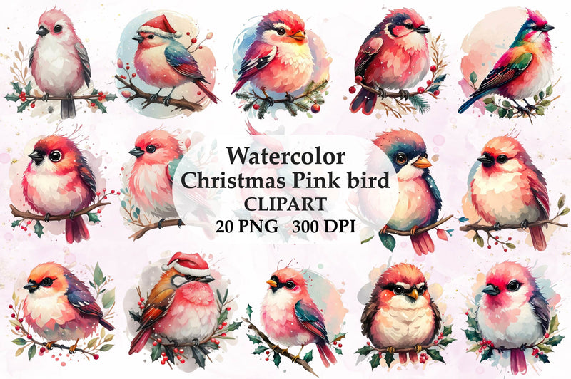 Chirp with this Pink Bird Christmas Animal Clipart Bundle, featuring colorful festive bird designs, perfect for holiday animal crafts.