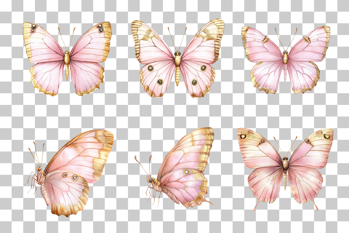 Transform your creative projects with the Pink Butterfly Gold Wings Clipart Bundle. This enchanting collection features stunning butterfly designs with shimmering gold accents, perfect for adding a touch of elegance to invitations, scrapbooking, and digital art. Ideal for crafters and designers seeking a whimsical and luxurious aesthetic, these high-resolution images ensure your creations stand out. Elevate your artistic endeavors with this versatile and captivating clipart set.