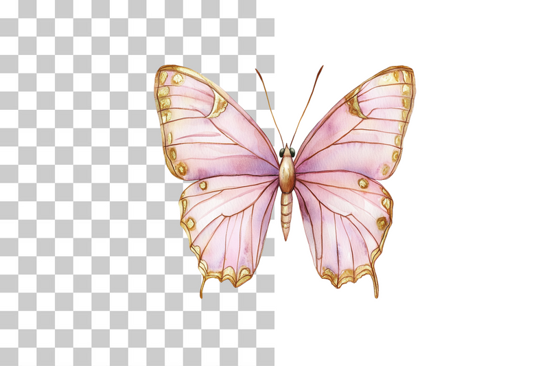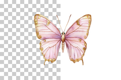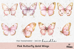 Pink Butterfly Gold Wings Clipart Bundle