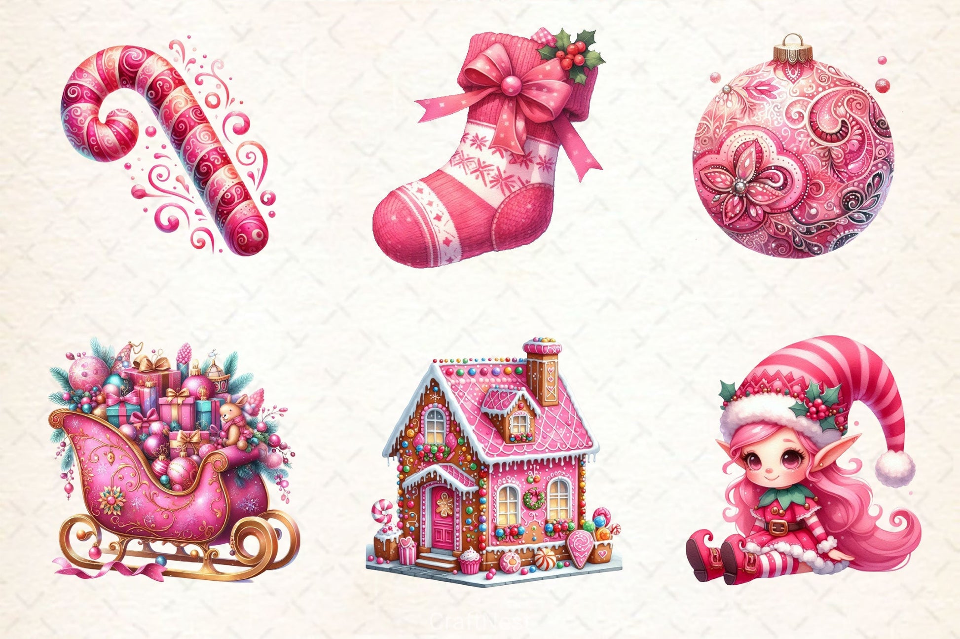 Blush with this Pink Christmas Clipart Bundle, featuring feminine holiday designs, perfect for girly Christmas crafts.