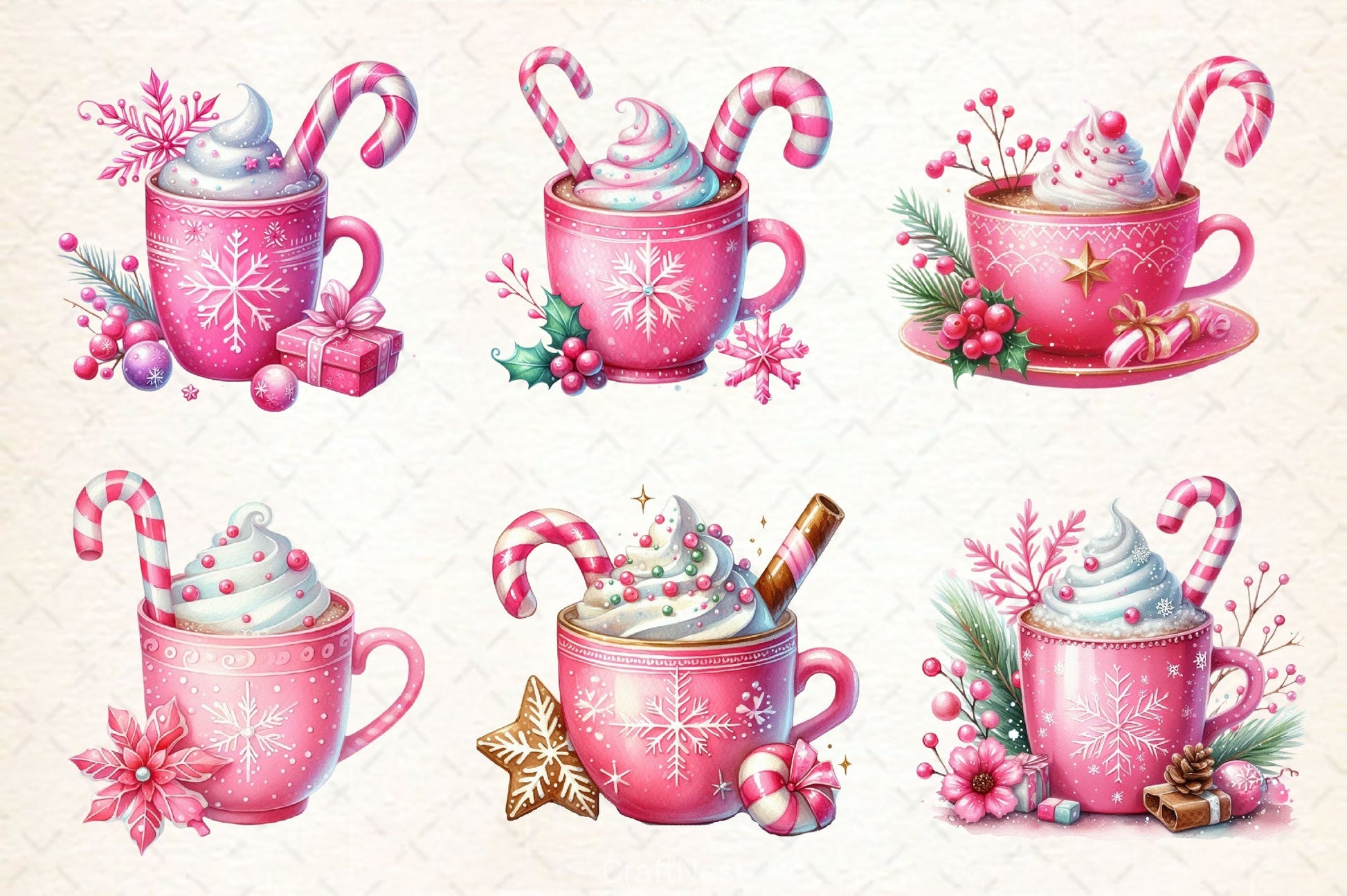 Pink Christmas coffee cups for feminine holiday beverage projects.