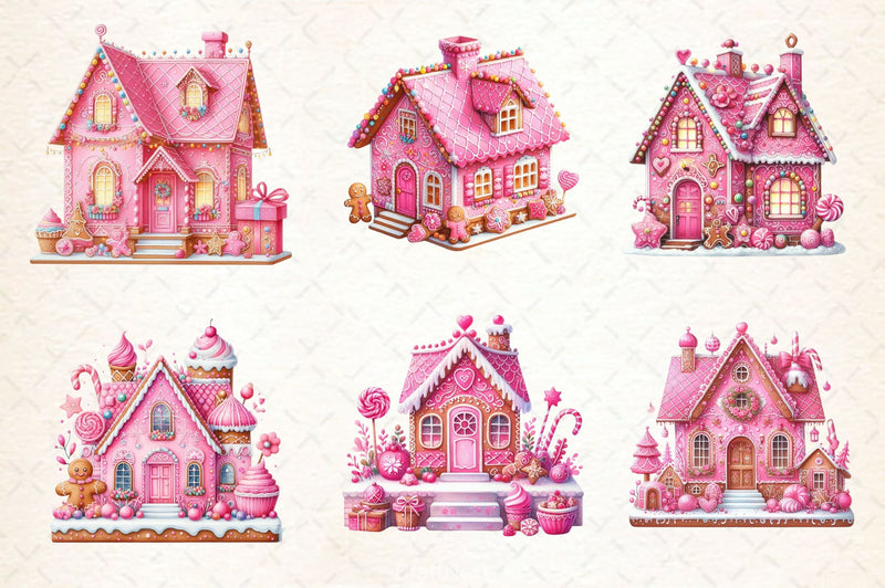 Bake with this Pink Christmas Gingerbread House Clipart Bundle, featuring feminine treat home designs, perfect for girly Christmas crafts.