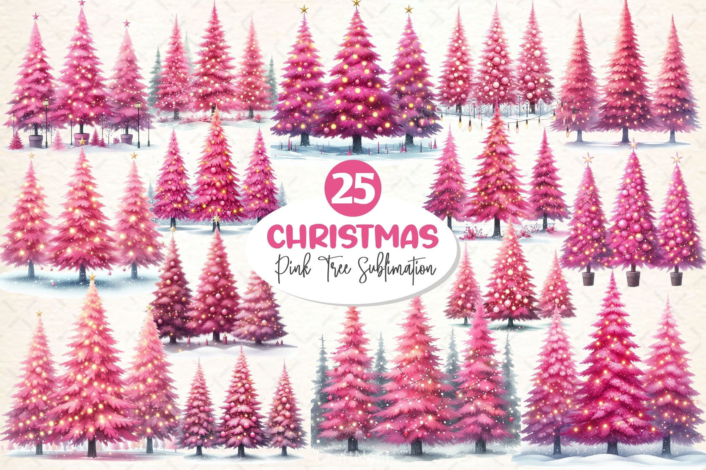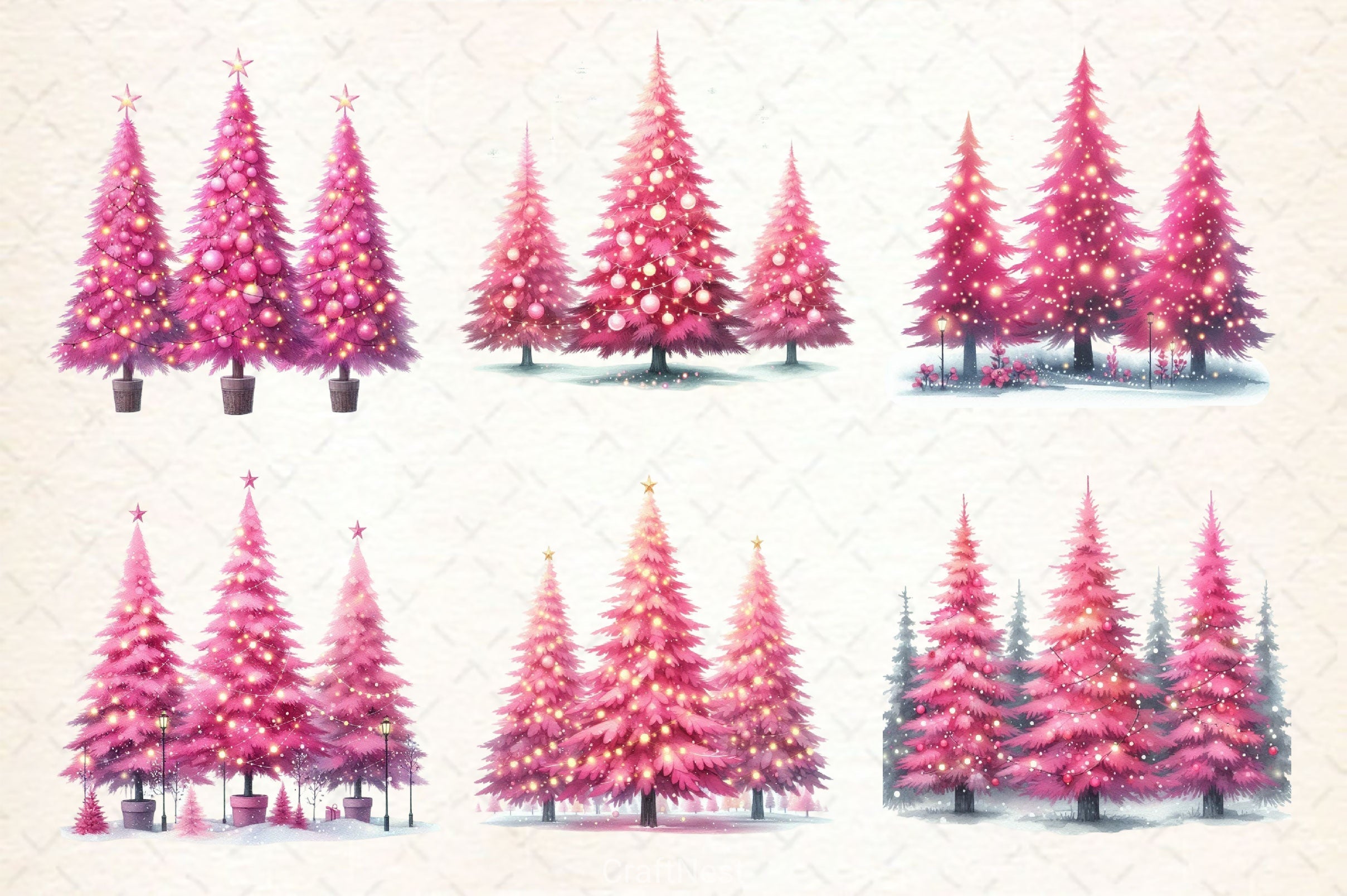 Blush with this Pink Christmas Trees Clipart Bundle, featuring feminine holiday tree designs, perfect for girly Christmas crafts.