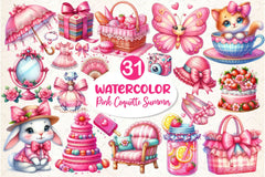 Pink Coquette Hello Summer Clipart Bundle