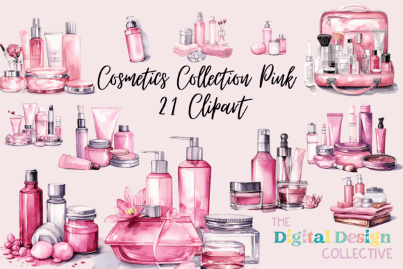 Enhance your creative projects with the Cosmetics Collection Pink Clipart Bundle, featuring stunning pink-themed cosmetic illustrations perfect for beauty blogs, social media graphics, and DIY design projects.