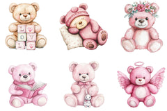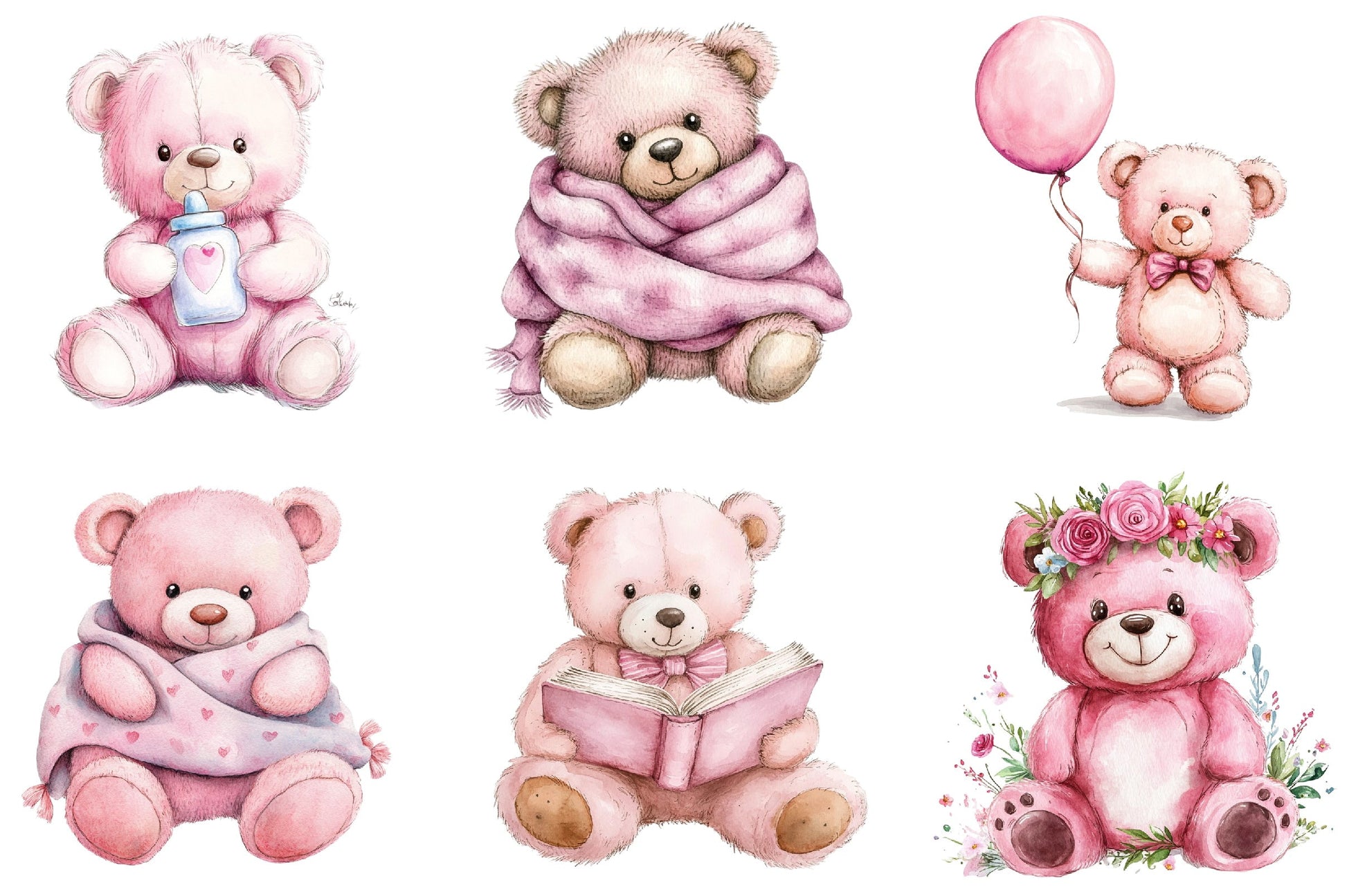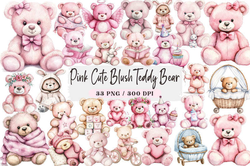 Pink Cute Blush Teddy Bear Clipart Bundle