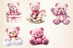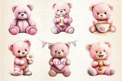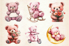 Pink Cute Blush Teddy Bear Clipart Bundle 3