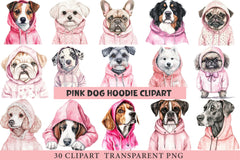 Snug with this Pink Dog Hoodie Clipart Bundle, featuring dog hoodie designs, ideal for pet-themed crafts.