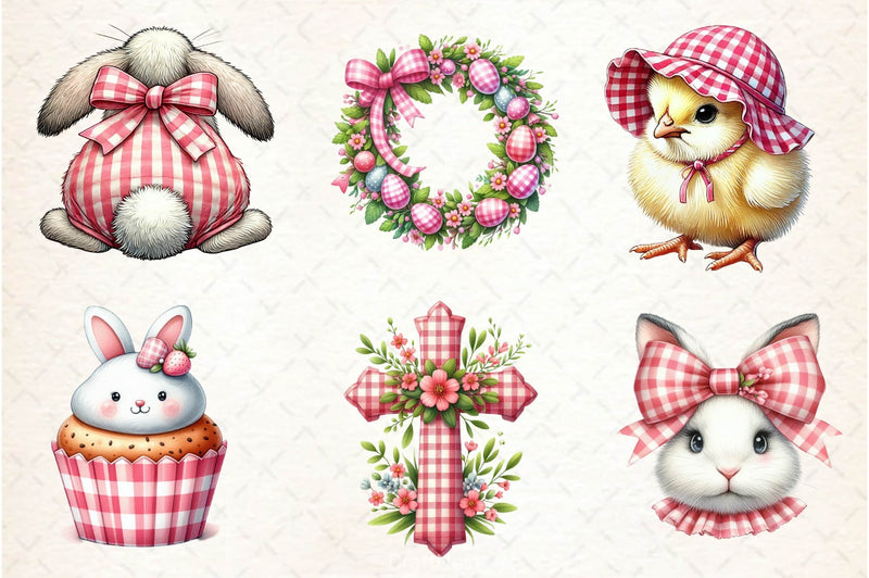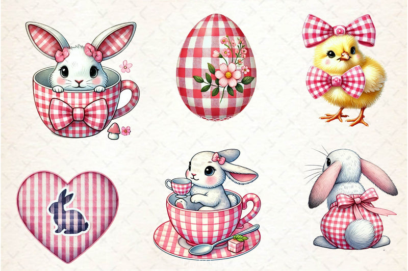 Pink Easter Gingham Ceramic Clipart Bundle 2