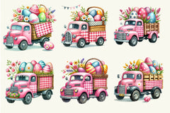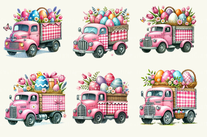 Drive with this Pink Easter Truck Clipart Bundle, featuring spring vehicle designs, perfect for Easter transportation crafts.