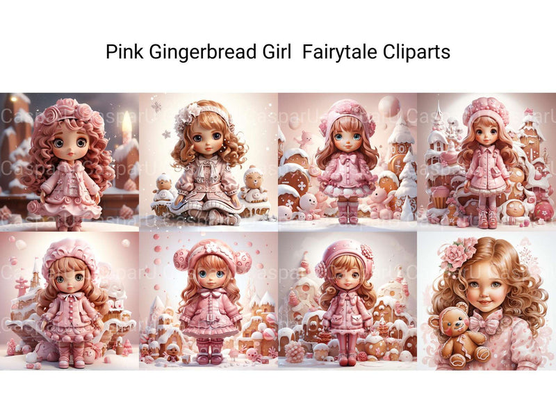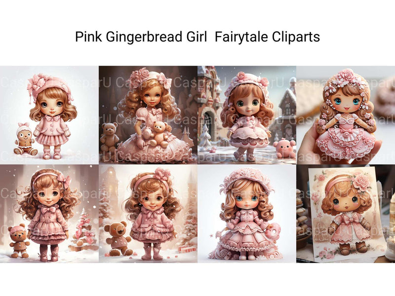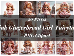 Add sweetness with this Pink Gingerbread Girl Bonus Clipart pack, featuring extra pink designs, perfect for cute fairy tale projects.