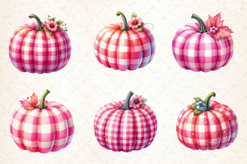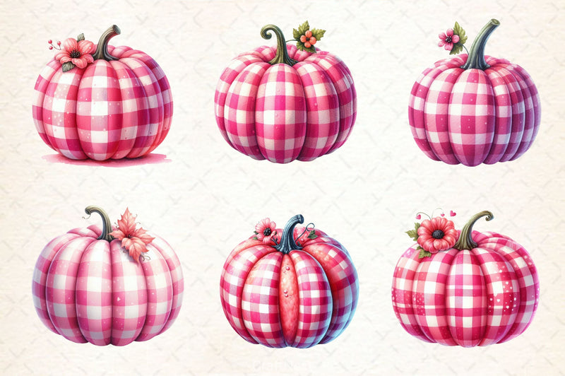 Pink Gingham Pumpkin Clipart Bundle 2