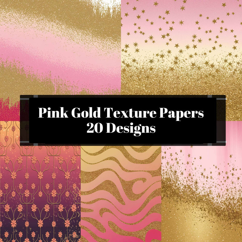 Glam up with this Pink Gold Texture Papers set, featuring luxurious metallic hues, perfect for elegant invitations.