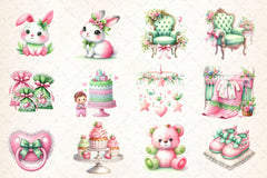 Pink & Green Coquette Baby Shower Clipart Bundle