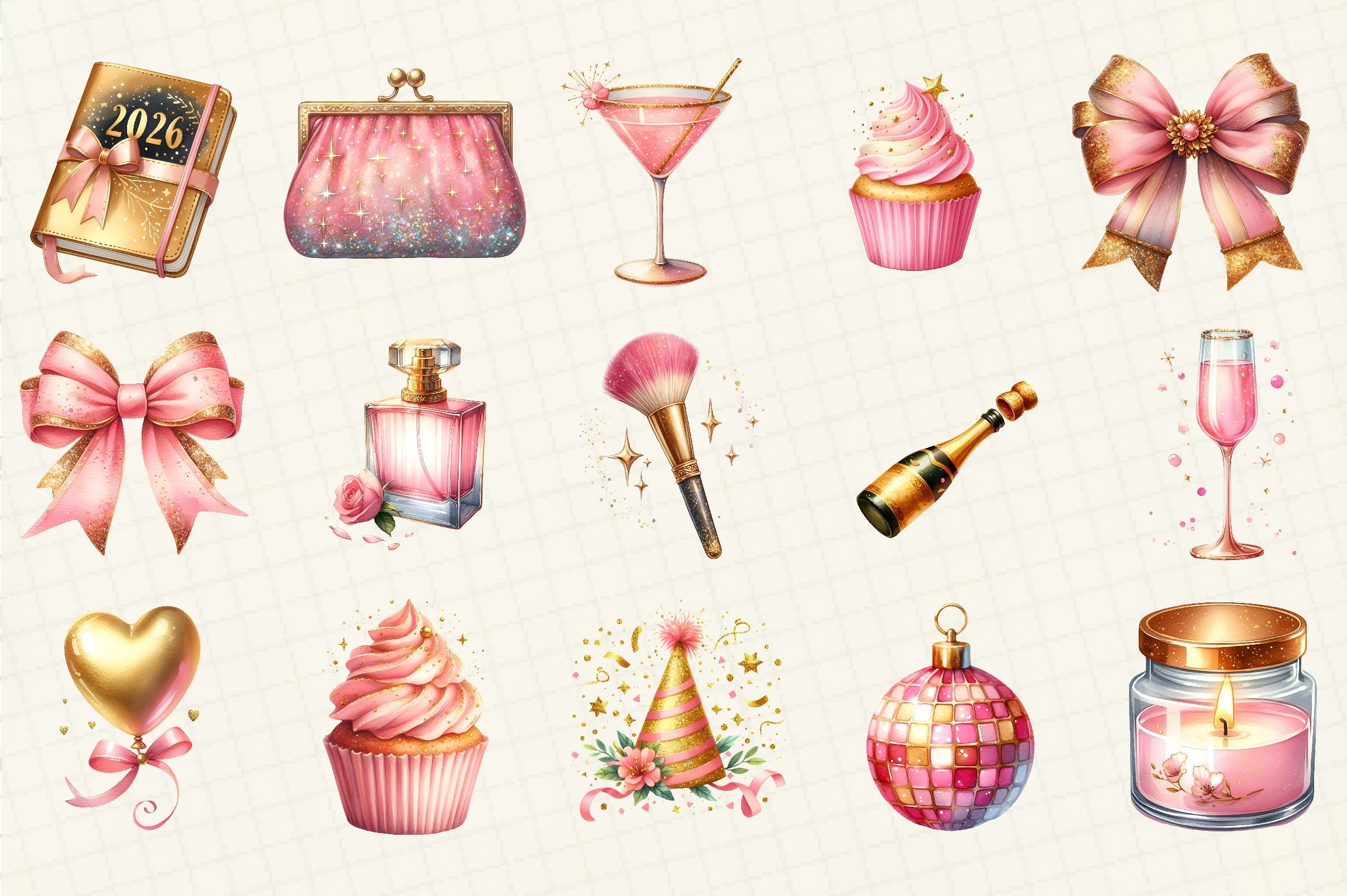 Celebrate in style with our Pink Happy New Year Clipart Bundle! Perfect for creating festive invitations, party decorations, and digital scrapbooks. This vibrant collection features unique, high-quality designs that add a touch of elegance and joy to your New Year projects. Ideal for crafters, designers, and DIY enthusiasts looking to make their celebrations unforgettable. Download now and start crafting your magical New Year experience!