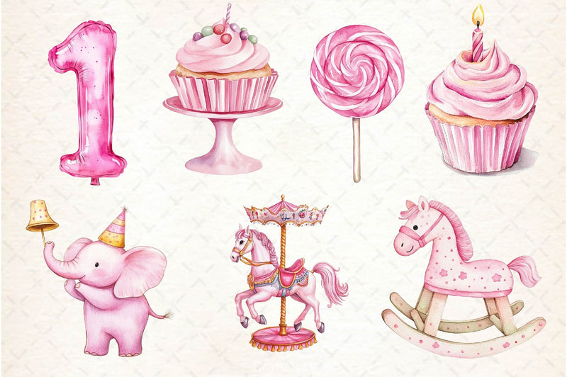 Party with this Pink Kids Birthday Clipart Bundle, featuring girly celebration designs, perfect for children birthday crafts.