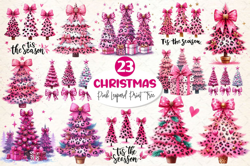 Pink Leopard Print Christmas Tree Clipart Bundle