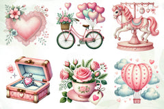 Pink Pastel Valentines Day Clipart Bundle