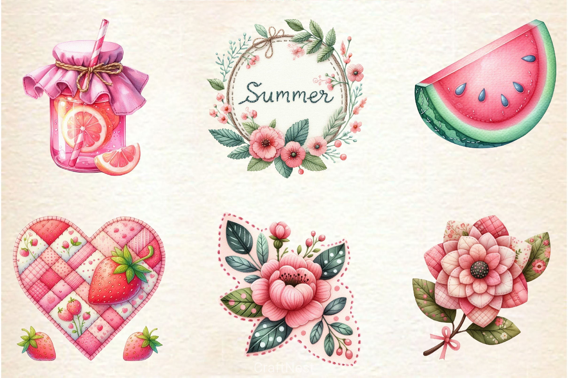 Quilt with this Pink Patchwork Summer Clipart Bundle, featuring bright summer patchwork designs, perfect for cheerful seasonal crafts.