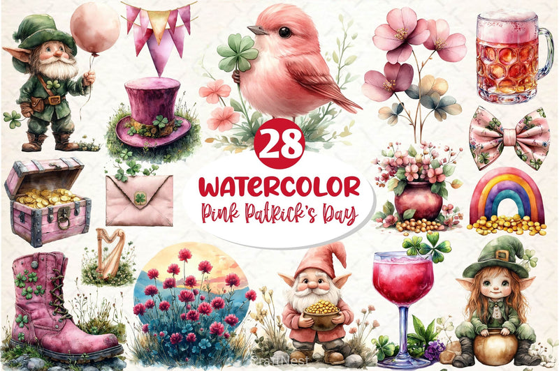 Lucky with this Pink Patricks Day Clipart Bundle, featuring girly Irish designs, perfect for feminine holiday crafts.