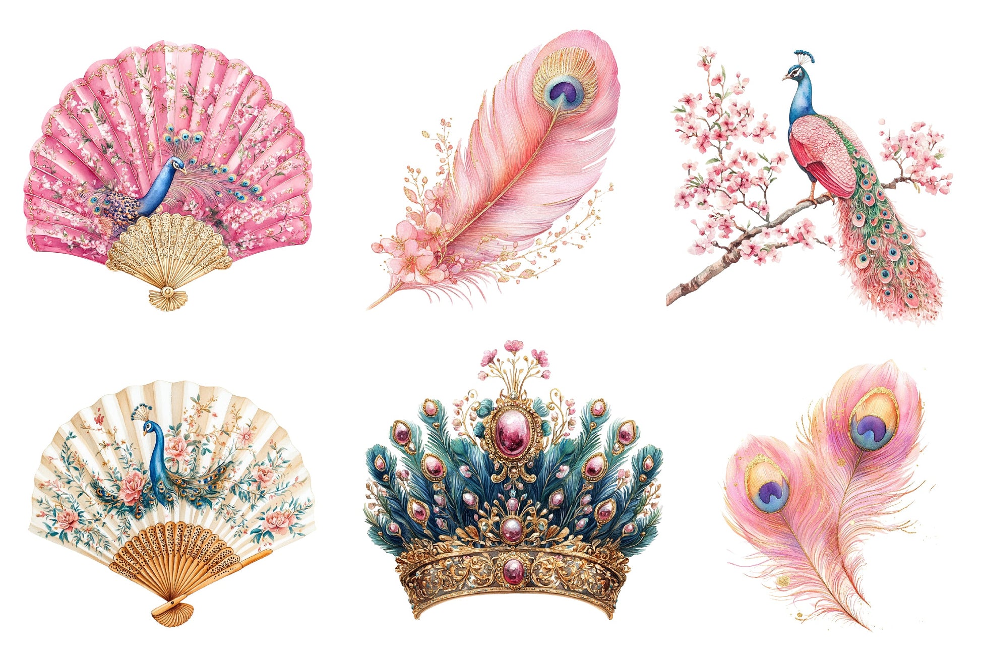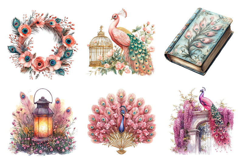 Strut with this Pink Peacocks Garden Clipart Bundle, featuring majestic peacock designs, perfect for garden bird crafts.