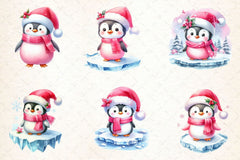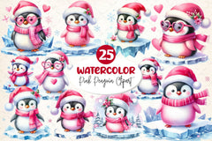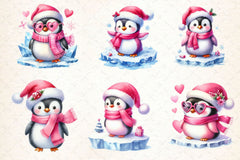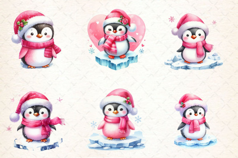 Pink Penguin Christmas Clipart Bundle