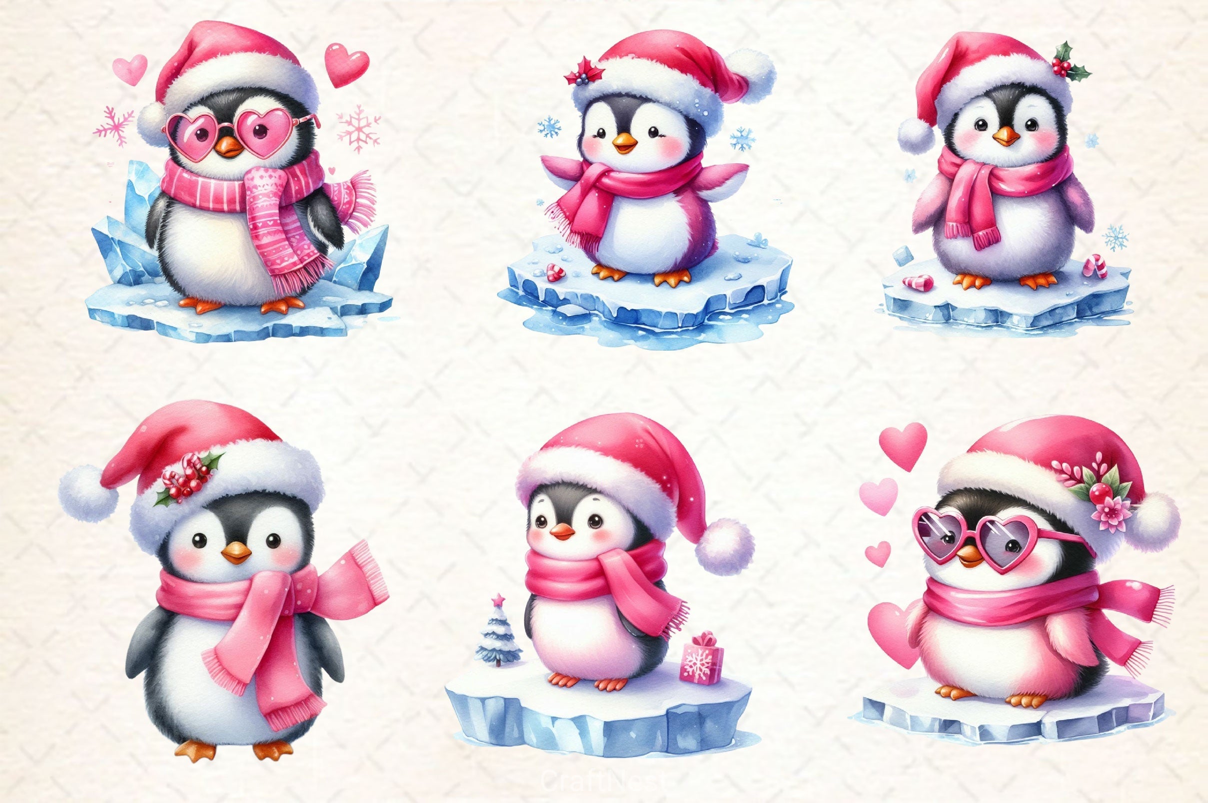 Adorable pink Christmas penguins for feminine holiday animal projects.